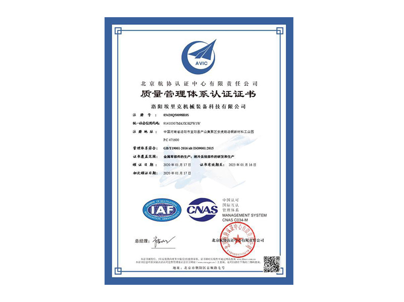 公司通过了GB/T19001-2016质量管理体系认证,体现了公司卓越的质量控制水平和综合竞争力。